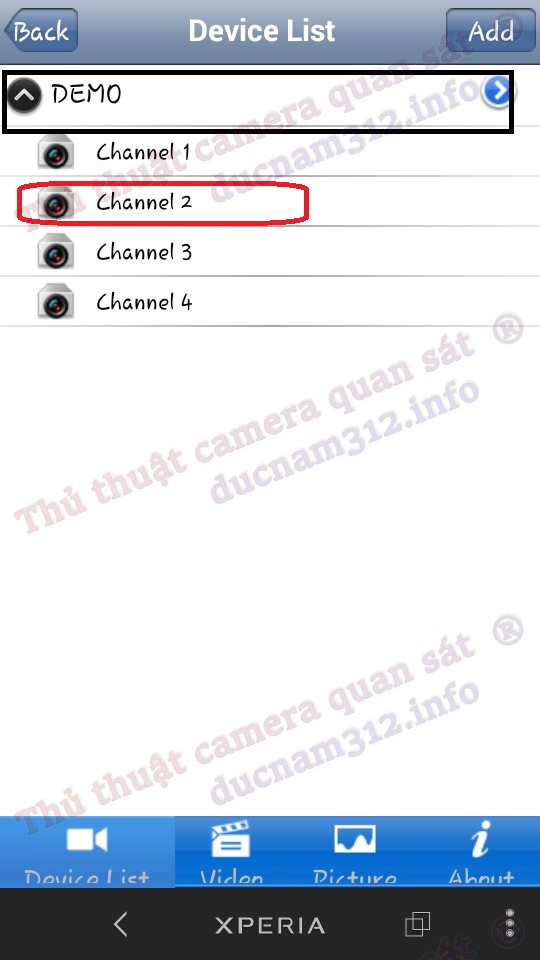 Để xem trực tiếp Bấm vào Thiết bị cầm xem và chọn Chanel cần xem. Ở đây mình chọn Chanel 2