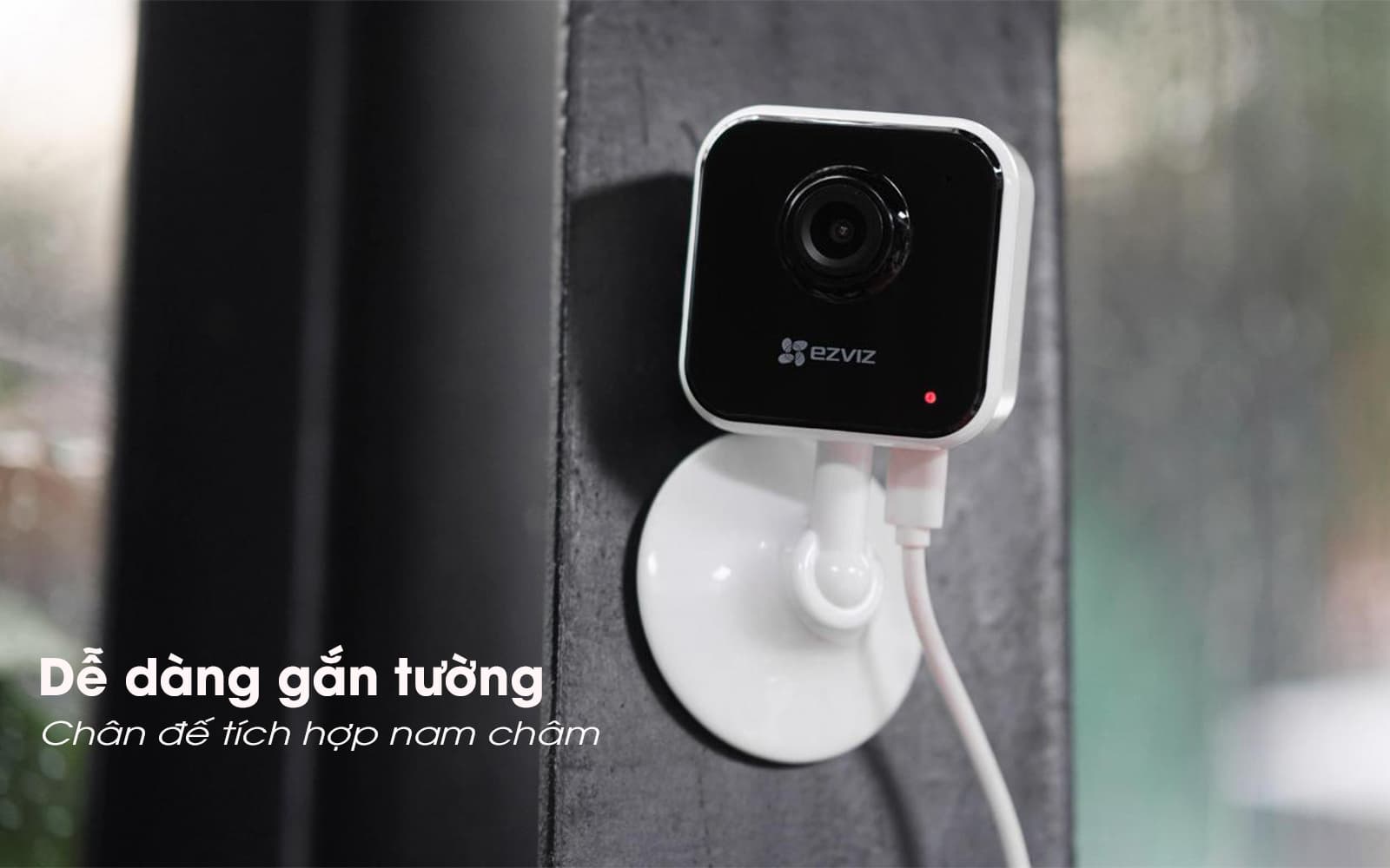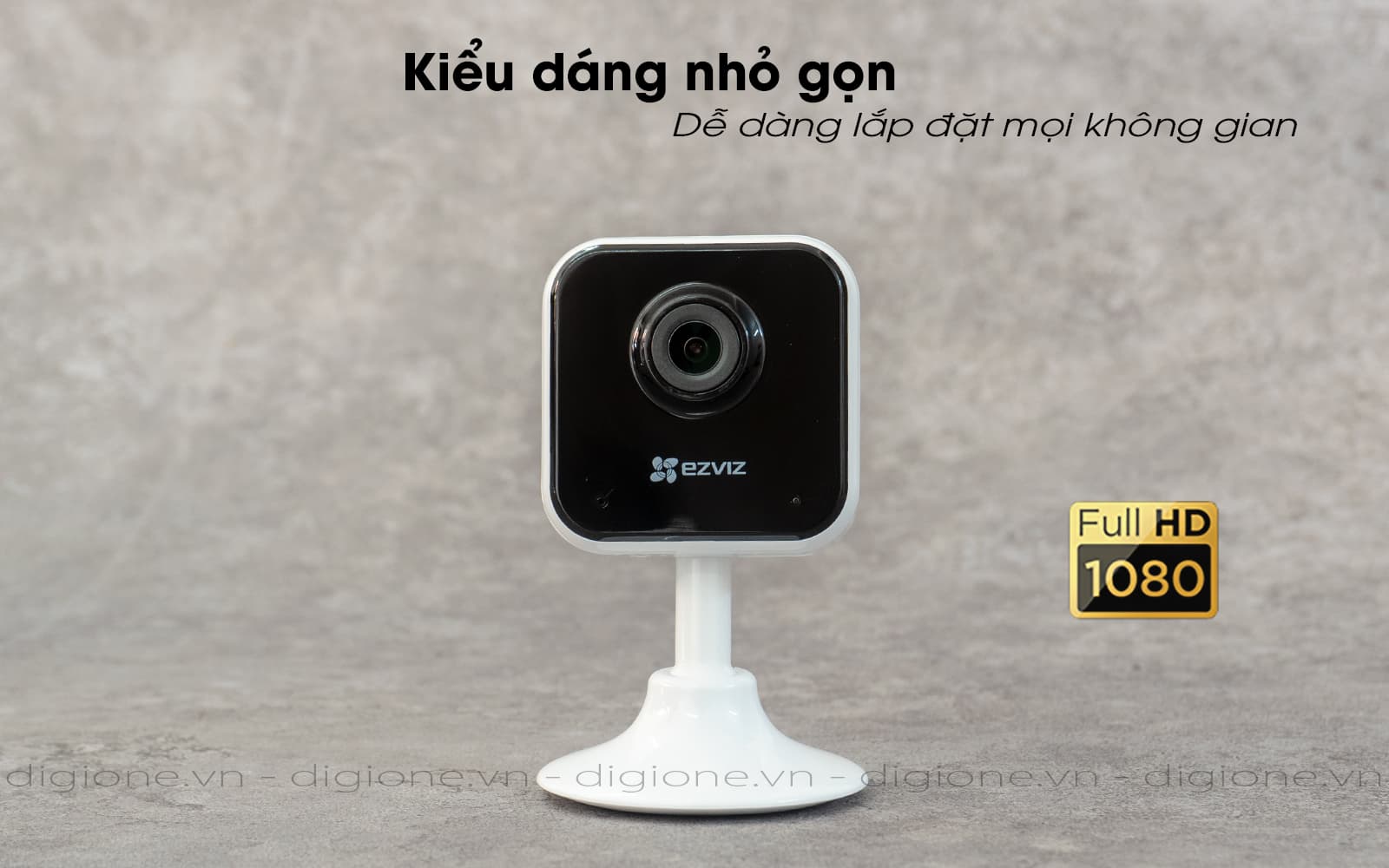 Camera IP Wifi Ezviz CS-C1HC (D0-1D2WFR) 1080P có kiểu dáng nhỏ gọn, thiết kế dạng hình vuông bo góc tinh tế, không làm ảnh hưởng đến tính thẩm mỹ của căn phòng khi lắp đặt camera. Có 2 miếng dán đi kèm, dễ lắp đặt để bàn hoặc treo tường.