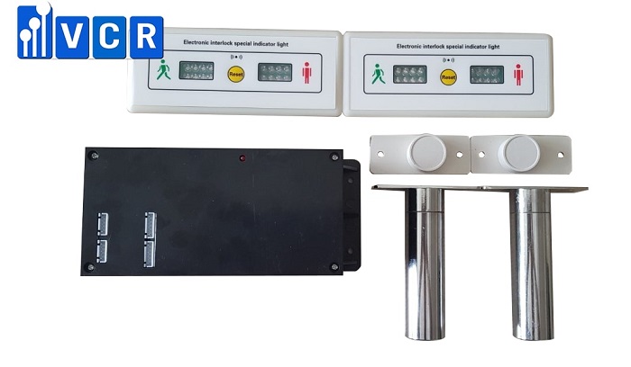 Đối với Khóa liên động đôi VCR, nó có khả năng điều khiển đóng mở của 2 cửa panel cùng lúc. Khi cửa số 1 mở ra thì cửa số 2 bị cưỡng chế đóng, cửa số 2 chỉ có thể được mở sau khi cửa số 1 đã đóng.