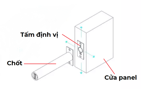 - Tấm định vị chốt sẽ được gắn ở trên cánh cửa, tương ứng với khu vực lắp đặt chốt khóa.